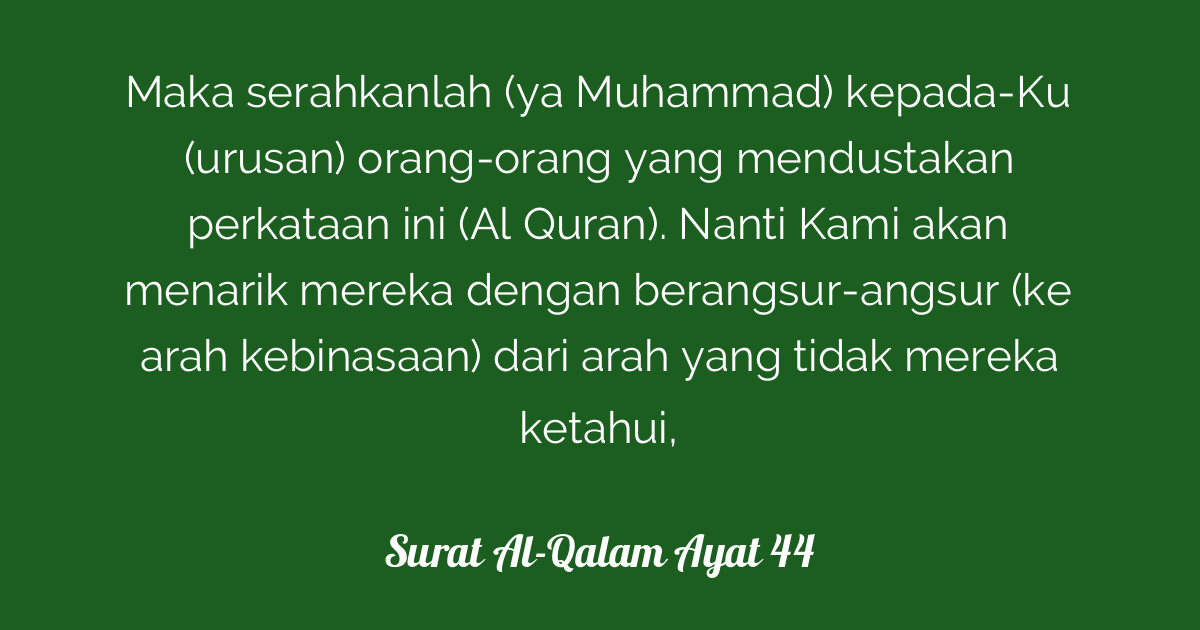 Leave me (to deal) with those who give the lie to this pronouncement surah al qalam ayat 4. We shall draw them little by little ( .
